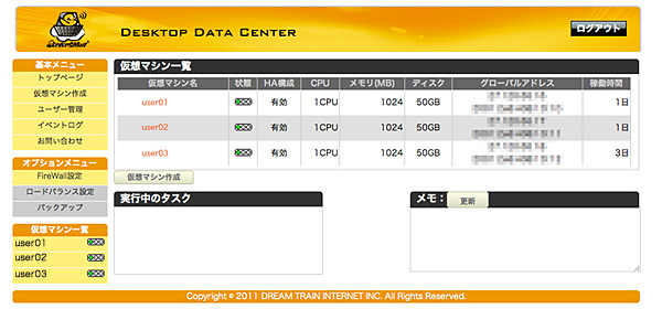 (「メモリ/CPU追加」など、オプションお申し込みにつきましては、7月11日より受付予定です。オプションのご利用、仮想マシン2台目以降のご利用は、追加費用が発生いたします。)
